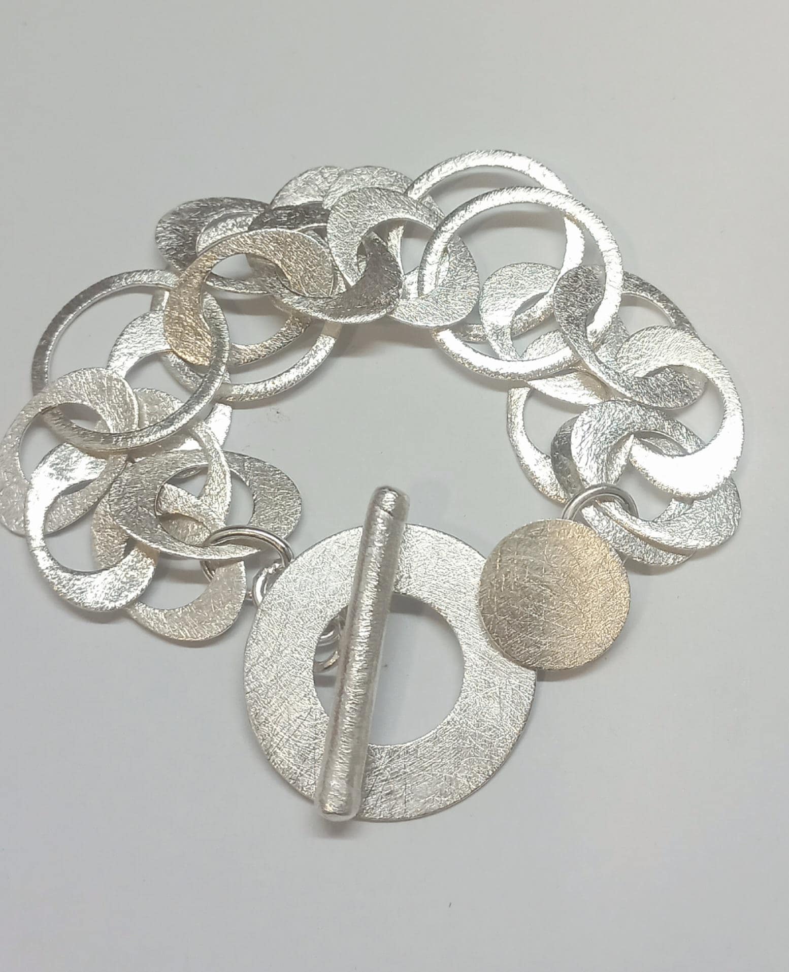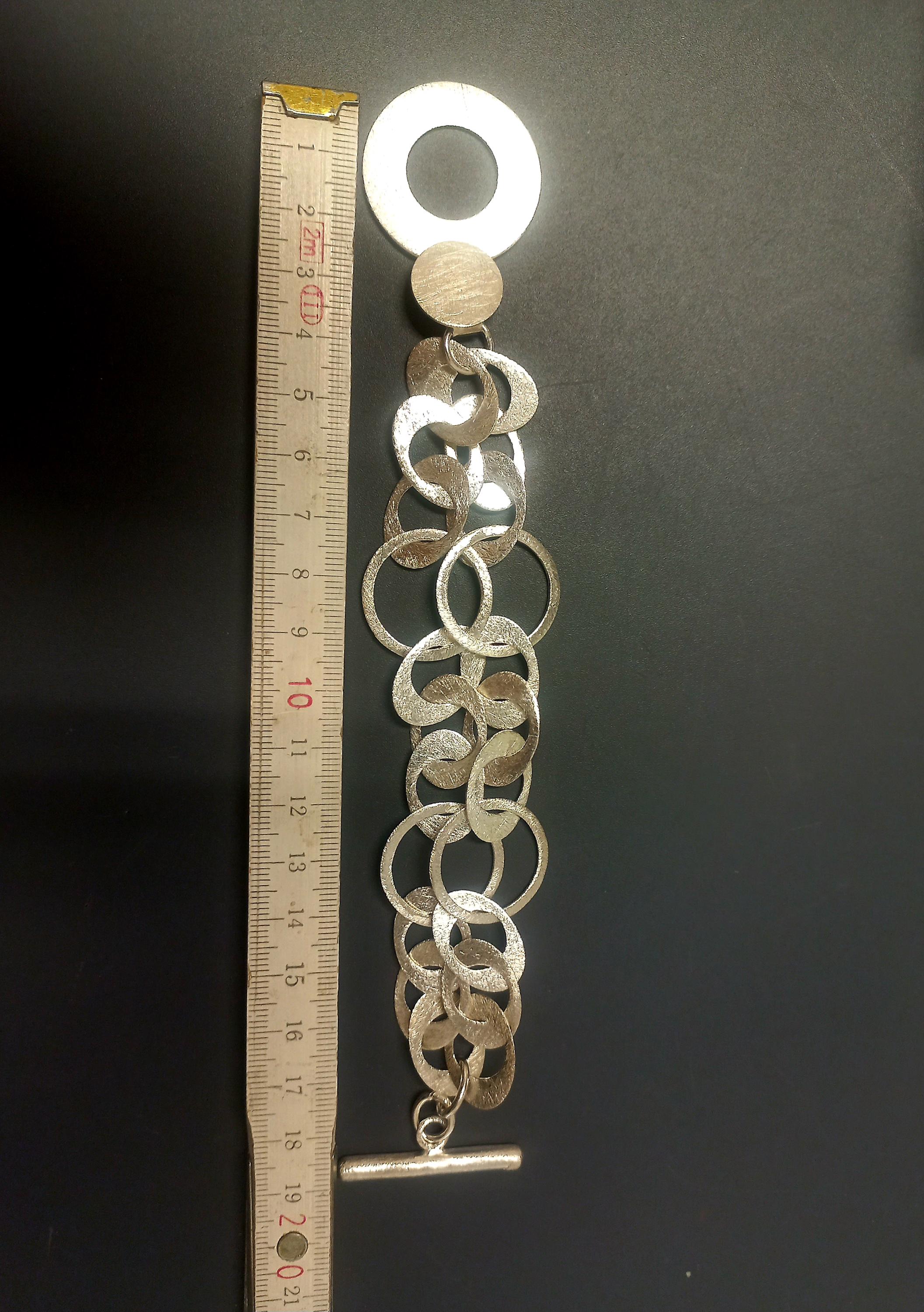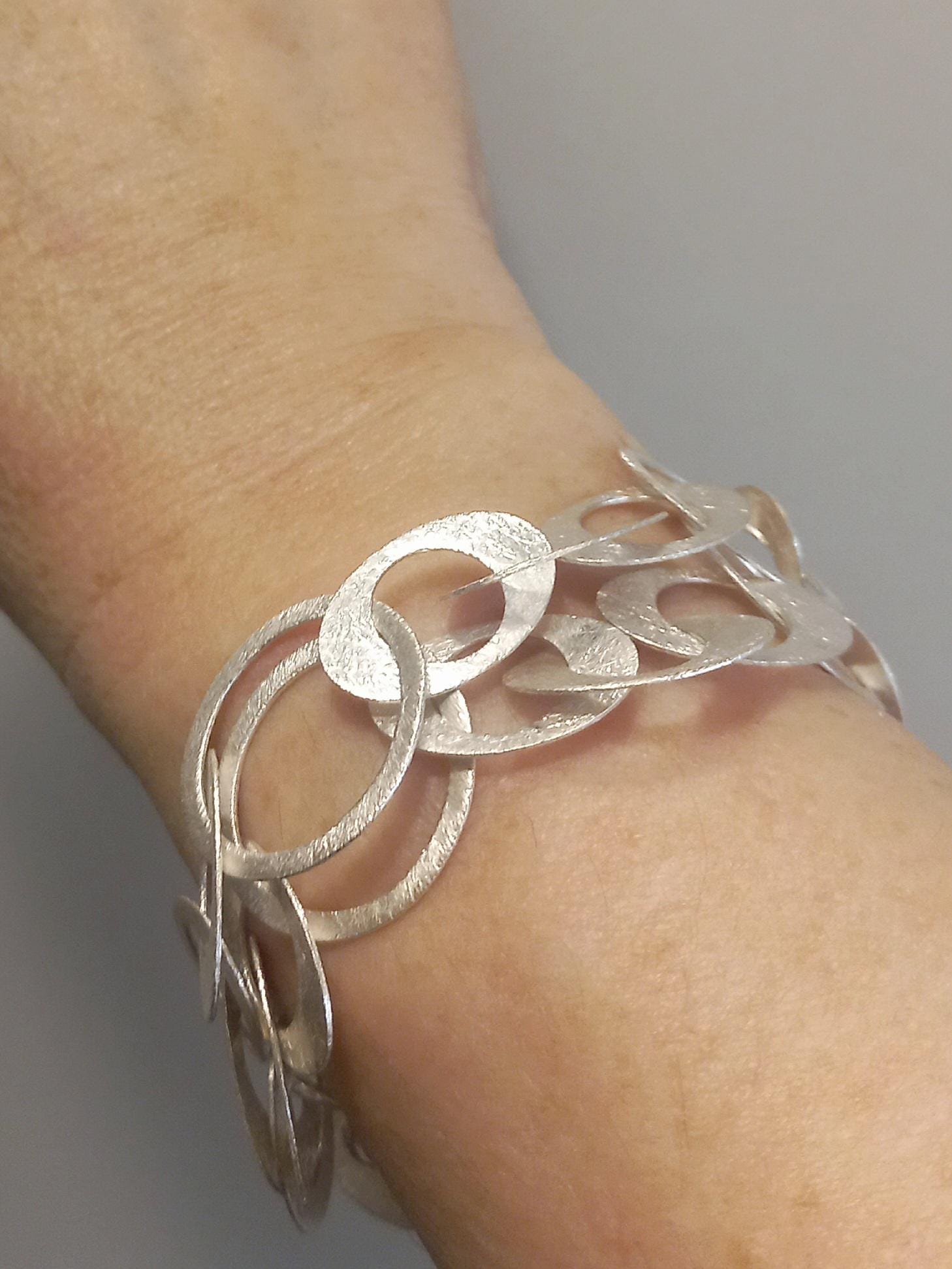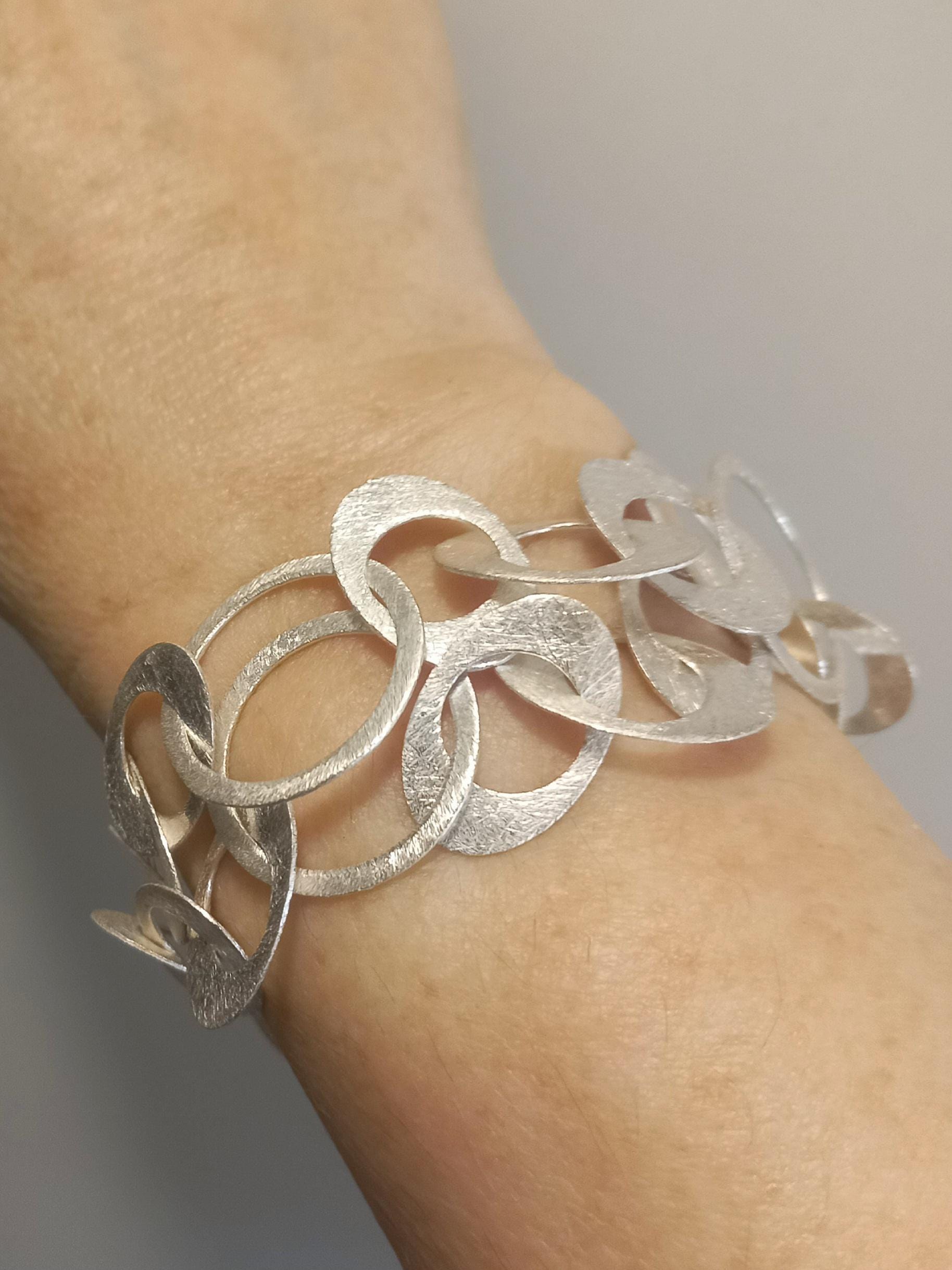 Striking craftsmanship in sterling silver, inspired by powerful structure and expressive design. A true statement piece! This bracelet is crafted from hand-forged sterling silver and impresses with its expressive, slightly rough texture. Perfect for those who love eye-catching jewelry and appreciate unique design.